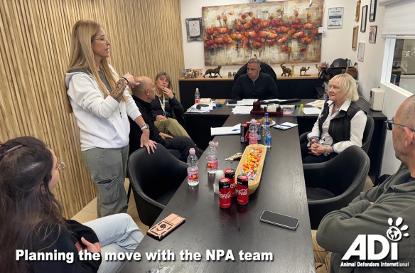 We had a very productive meeting with the NPA team, planning the relocation, learning about the characters of the lions, feeding routines and so on. It may not seem as exciting as the actual rescues and relocations, but meetings, planning and coordination are what ensure animals are moved safely. We also got to see a little of their work at a local nature reserve returning vultures and other animals to the wild.