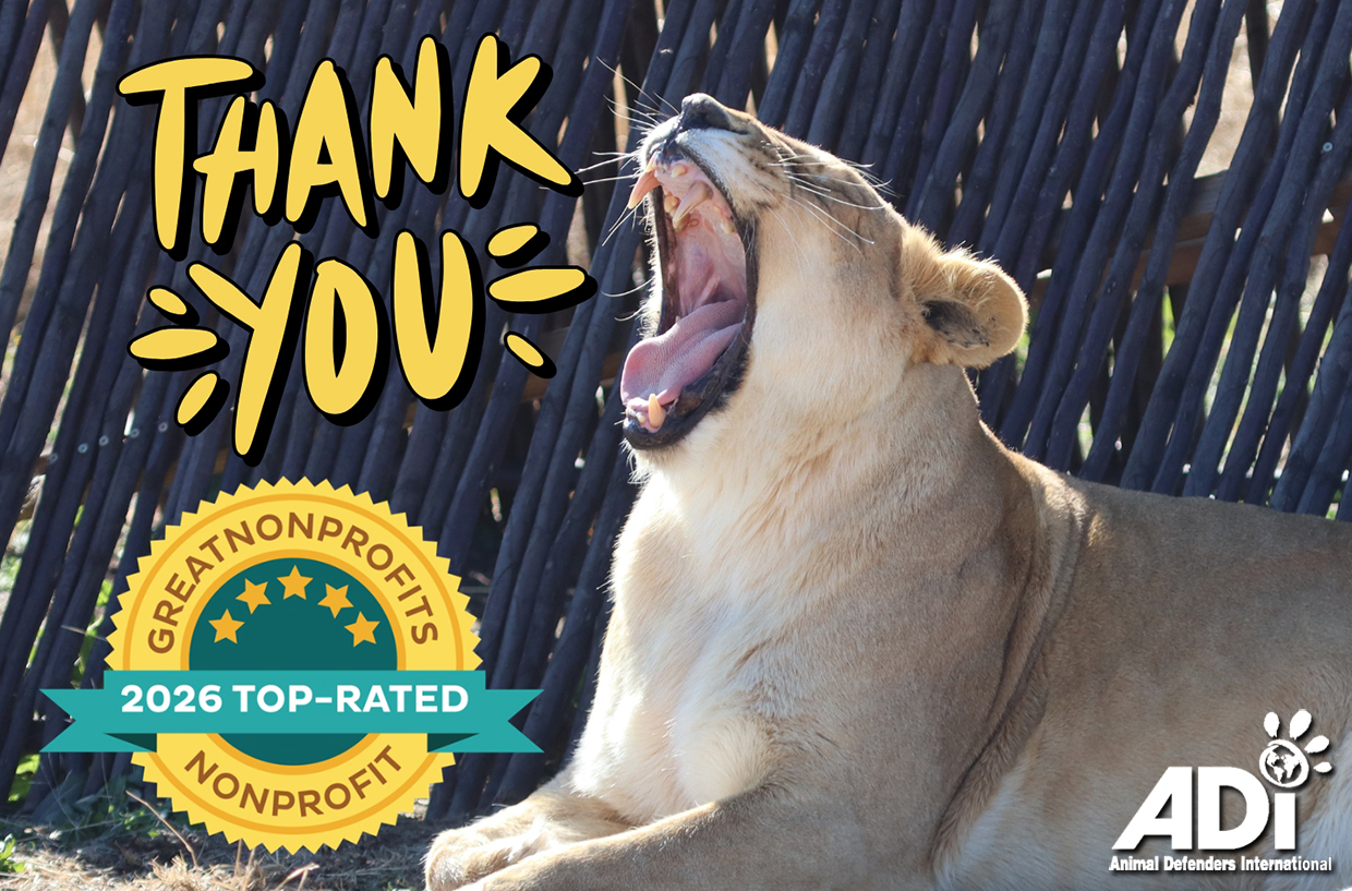 I am pleased to bring you the latest on our campaigns for animals around the world and activities at the ADI Wildlife Sanctuary in South Africa. This work is only possible with your support.