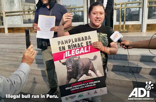 An illegal ‘Pamplonada’ (running of bulls in the streets) and bullfight took place in Peru in February, promoted by the Lima Municipality of Rímac. Large numbers of children were in attendance, contrary to repeated calls to protect children from violent spectacles such as bullfights. A lawsuit was filed arguing that the bull run violated Animal Welfare Law 30407, and members of Peru Without Bullfighting (Perú Sin Toreo) protested outside the Public Prosecutor’s Office.