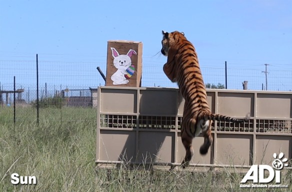We never need any excuse for giving the rescued lions and tigers at the ADI Wildlife Sanctuary extra treats and it has become a tradition to mark special days and holidays from Valentine’s Day to Easter with themed toys.