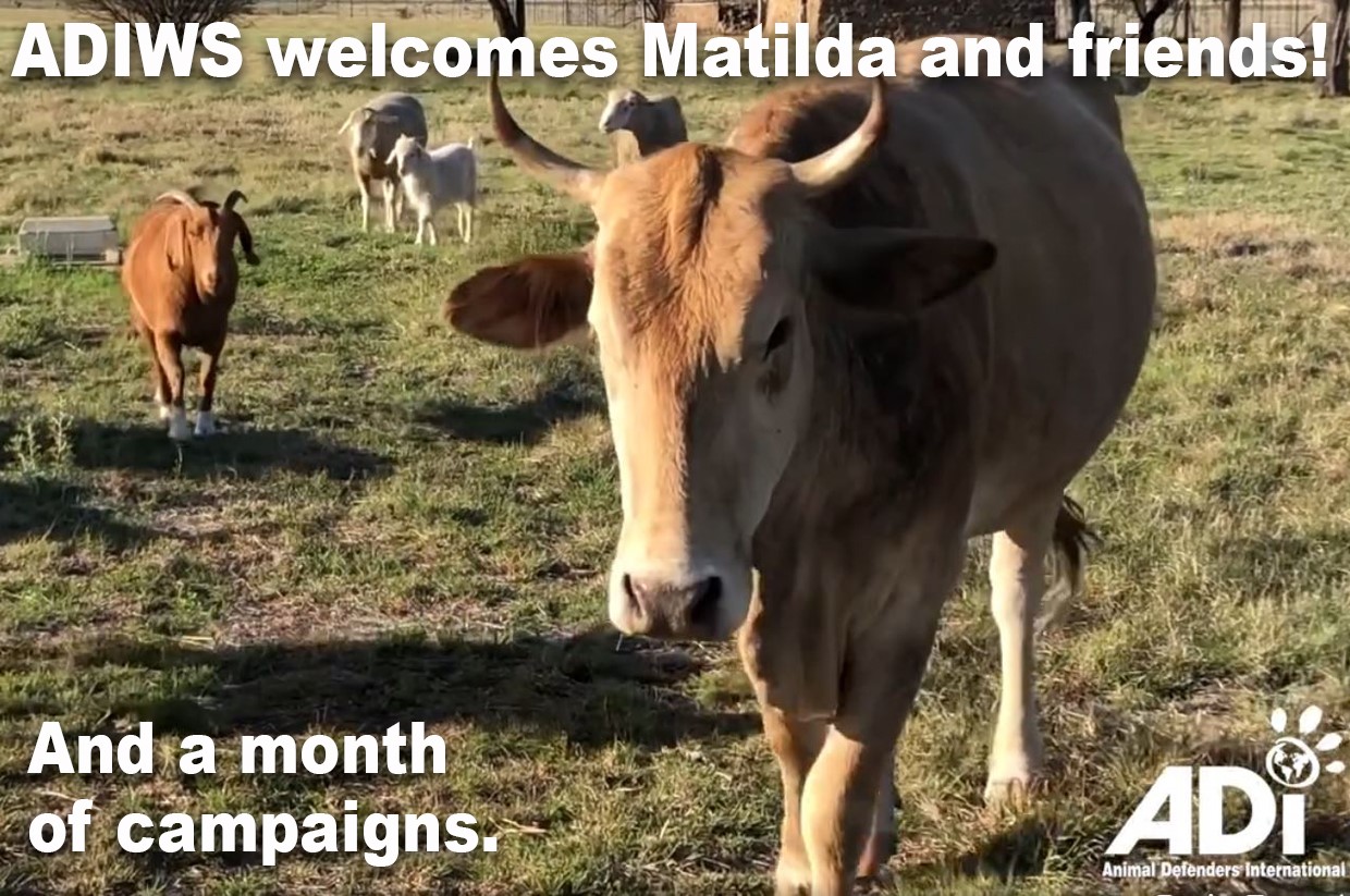 With plenty of open space, the ADI Wildlife Sanctuary has become a beacon of hope in our region, where facilities for animals rescued from abuse are very limited. Earlier this year, we took in a family of donkeys from an abandoned tourist lodge. With your help, they have now been joined by a lovely group of eights goats and two sheep, led by Matilda the cow. Together, they now enjoy a life of freedom, respect, and care. See video here.