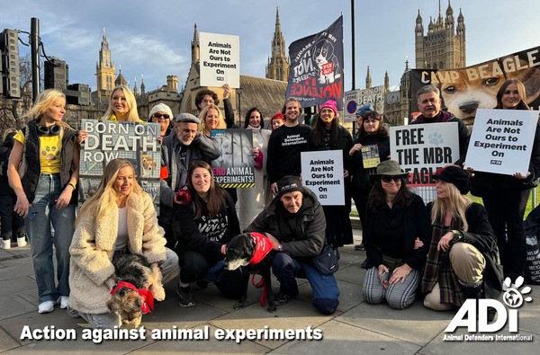 ADI and other UK animal groups are urging political parties to develop a nationwide plan to phase out experiments on animals, and adopt scientifically advanced, animal-free methods as part of their manifesto commitments for the general election. We joined fellow advocates outside parliament as MPs discussed animal testing and non-animal methods, following public petitions. During the debate, the government announced that it will publish a plan this summer “to accelerate the development, validation, and uptake of technologies and methods to reduce reliance on the use of animals in science.”