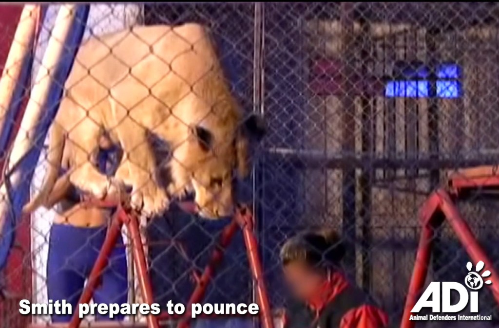 The circus was defiant and continued business as usual. The performance of Smith, a huge, castrated lion (hence no mane) involved an audience member being invited into the ring for Smith to jump over them – a stupid and irresponsible act. On August 15, 2014, a schoolteacher stepped into the ring. Smith looked down from a pedestal above her, then pounced, dragging her around the ring as the worker repeatedly beat him with a metal bar. The thick collar of her winter coat saved her.