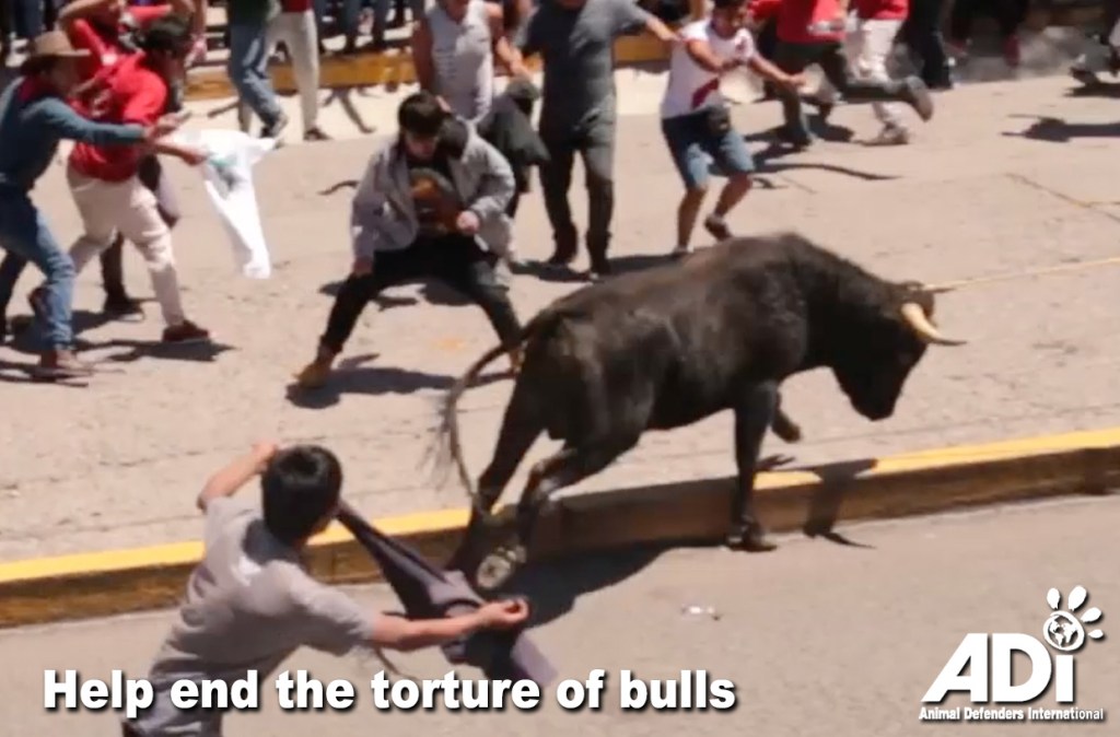 Five people were injured, with one man gored by a bull on the first day of the San Fermin Festival, Pamplona, Spain, as terrified bulls are chased by mobs through the streets and later killed by bullfighters. Tourists continue to support this suffering which is sold as ‘tradition’. Help ADI continue the progress we have made in Latin America. Write to Pedro Sanchez, the Prime Minister of Spain and urge him to ban bull-runs and bullfighting.