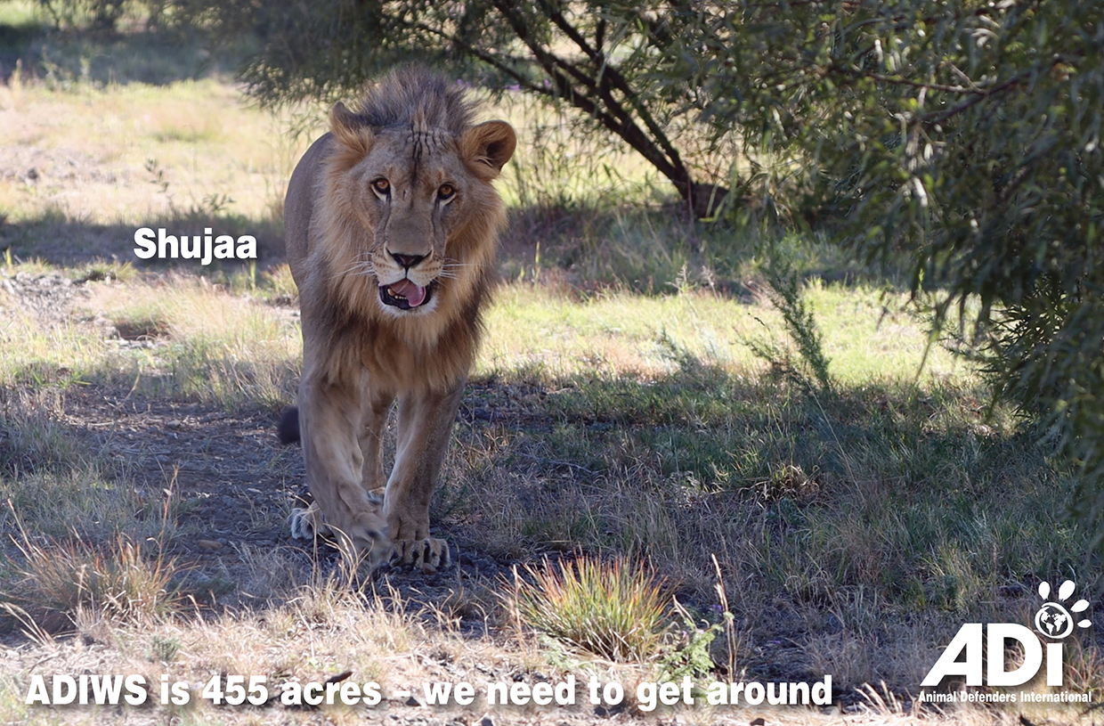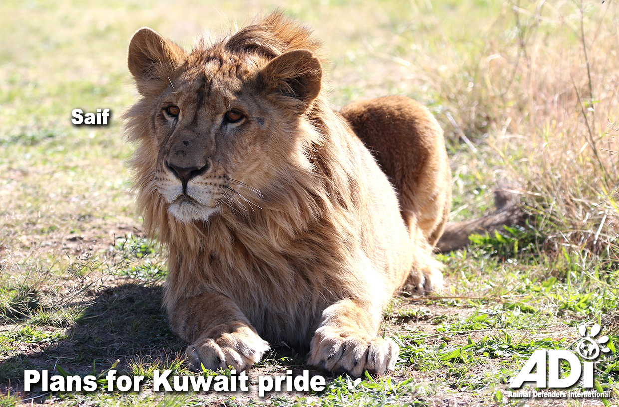Work has begun at the ADI Wildlife Sanctuary to integrate Dhubiya, Saif (above) Aziza, and Muheeb, as either a single pride or two pairs. The four rescued from the Kuwait illegal wildlife pet trade have settled in well. Dhubiya and Aziza have been spayed so they don’t breed and to prevent the risk of pyometra and some cancers later in life. We have modified the habitats so the whole group can be rotated through the 2.5-acre area to get used to one another. It will be a slow process as we carefully monitor how they like each other. This will take some time, and we cannot guarantee success but we always work to try and avoid lions living alone.