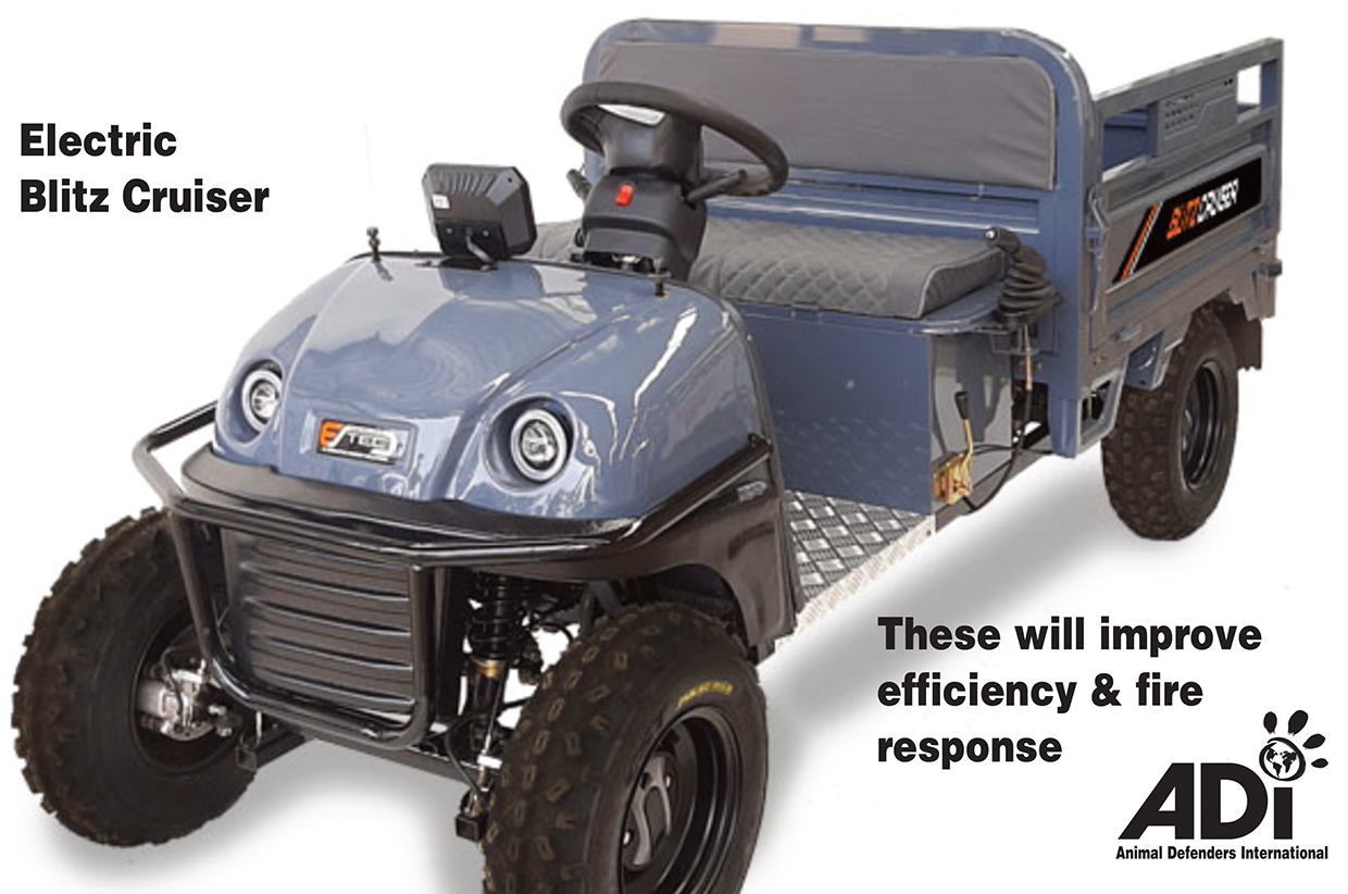The electric Blitz Cruisers will be a vital addition to our work for the animals every day – for feeding, medications, firefighting, repairs, and maintenance – improving our efficiency and security, and helping us to save more animals.