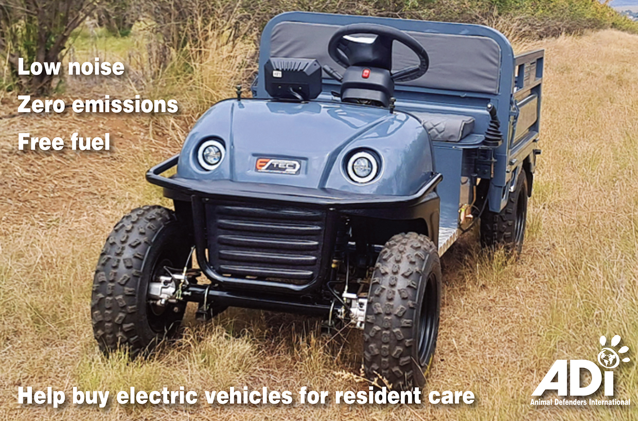 This weekend, I hope you will help me raise enough to purchase the first two electric off-road vehicles for the ADI Wildlife Sanctuary. Thanks to our first appeal we are closer to the target, and great news is that one of our Sanctuary Founders has offered a $3,500 / £2,600 match fund. This means that donations this weekend will be doubled, and we can purchase our first two Blitz Cruisers!