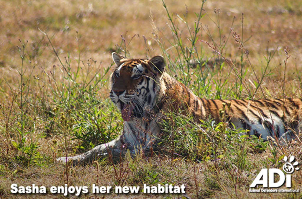 Sasha Tiger has settled into her new Alexis Habitat at ADIWS. Her former Siddhi Habitat was converted into our new permanent quarantine unit, with its first occupants, Goliath and Coralie, who will move to their forever habitat after quarantine. Sasha is enjoying her new area and house, and is closer to her family – Max, Stripes, Lupe are in talking distance across the road. The next habitat to them is Sun, Moon and Luna, which has a section of fence adjoining Sasha, so they can communicate and rub through the fence. There has been a great deal of happy chuffing (greeting) vocalizations between the family!